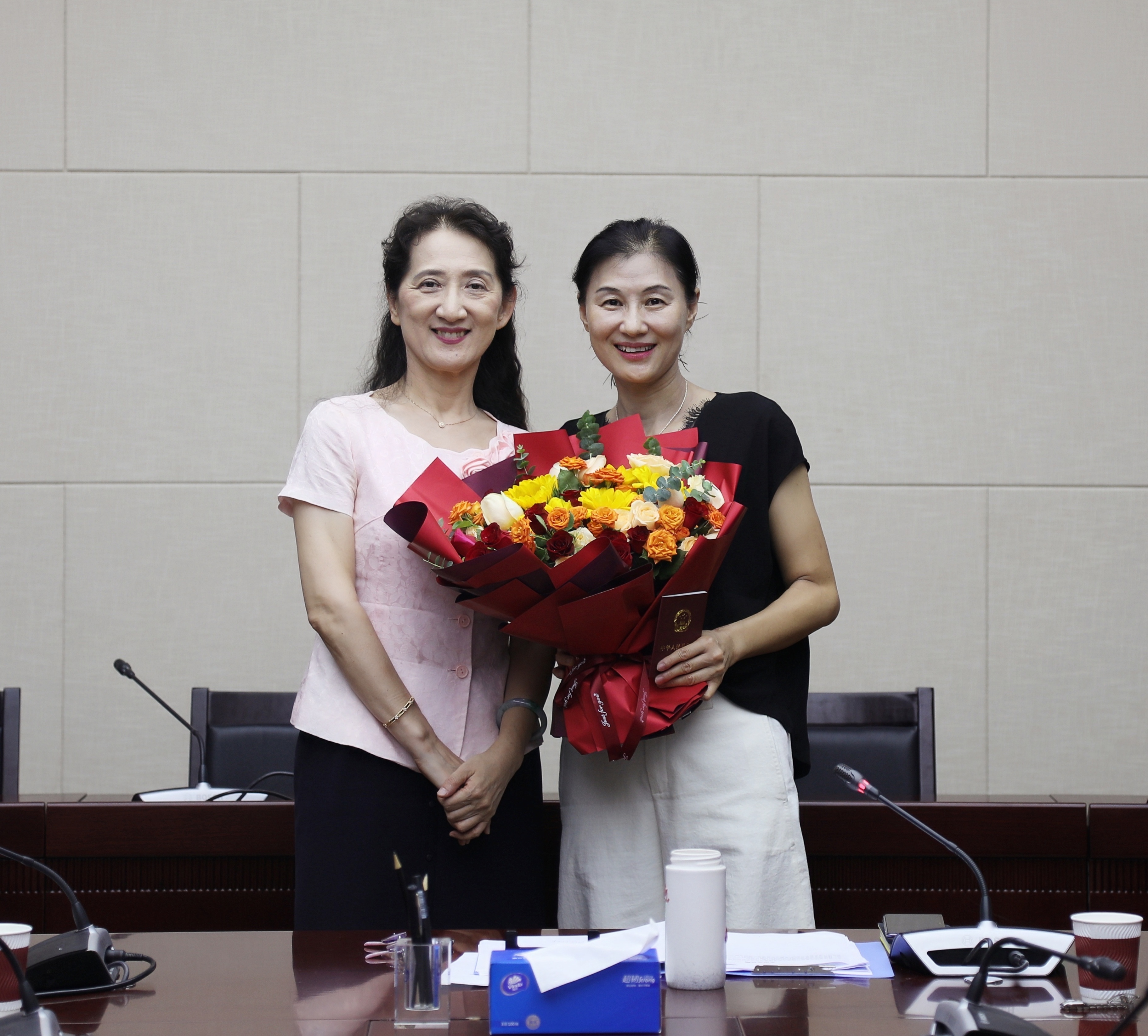 最后,闫坤书记代表党委向刘瑞同志颁发退休证、送上鲜花,吴怀中副所长代表工会送上荣退纪念品。