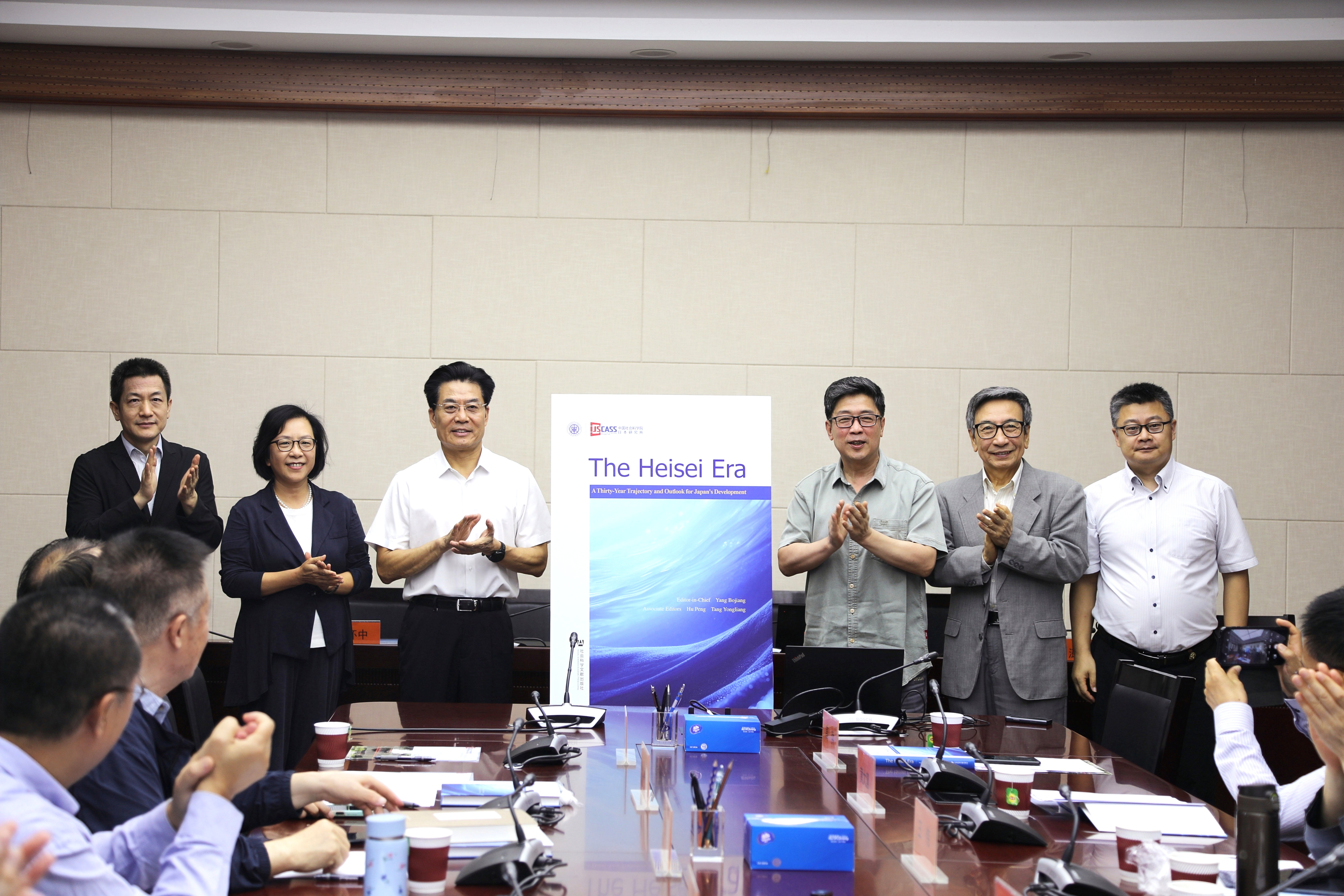 会议举行了《平成时代:日本三十年发展轨迹与前瞻》英文版新书发布仪式,由杨伯江所长、冀祥德社长、吴怀中副所长、中华日本学会名誉会长高洪研究员、胡澎副主编、唐永亮副主编共同为新书揭幕。