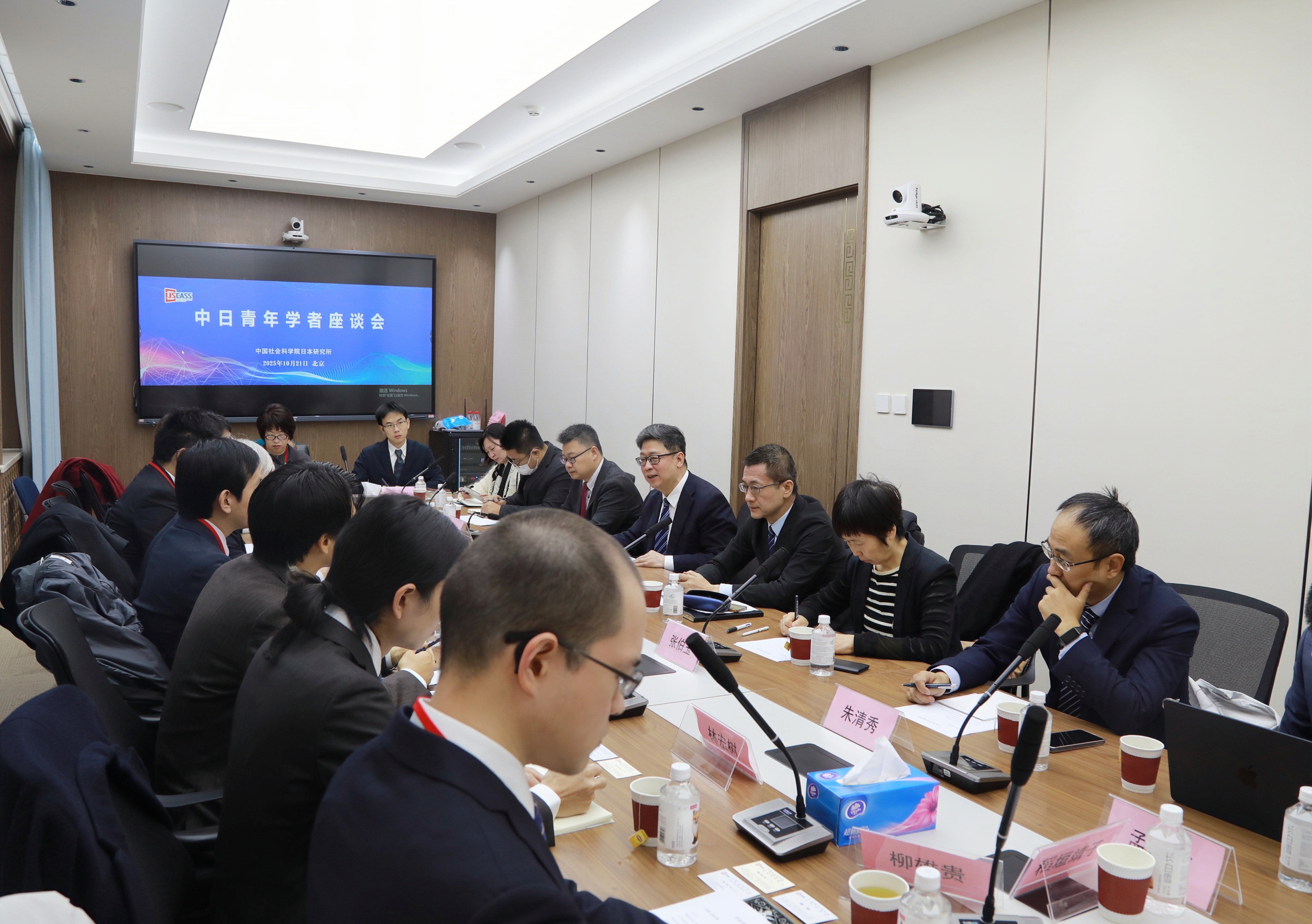 10月21日上午,访华团一行到访中国社会科学院日本研究所,与我所青年科研人员举行“中日青年学者对话座谈会”。杨伯江所长表示,中日青年交流对于增进中日相互理解、促进中日关系健康稳定发展至关重要,期待代表团成员通过充实、高密度的考察交流深化对华认知,形成“等身大”的“中国印象”。鹤间和幸团长感谢中方邀请,表示日本青年学者代表团每年访华、进行面对面交流,机会弥足珍贵,收获很大。座谈会由吴怀中副所长主持。